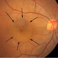 Central serous retinopathy (CSR) occurs when fluid builds up under the retina, causing swelling and vision distortion. This results in blurry or reduced central vision.